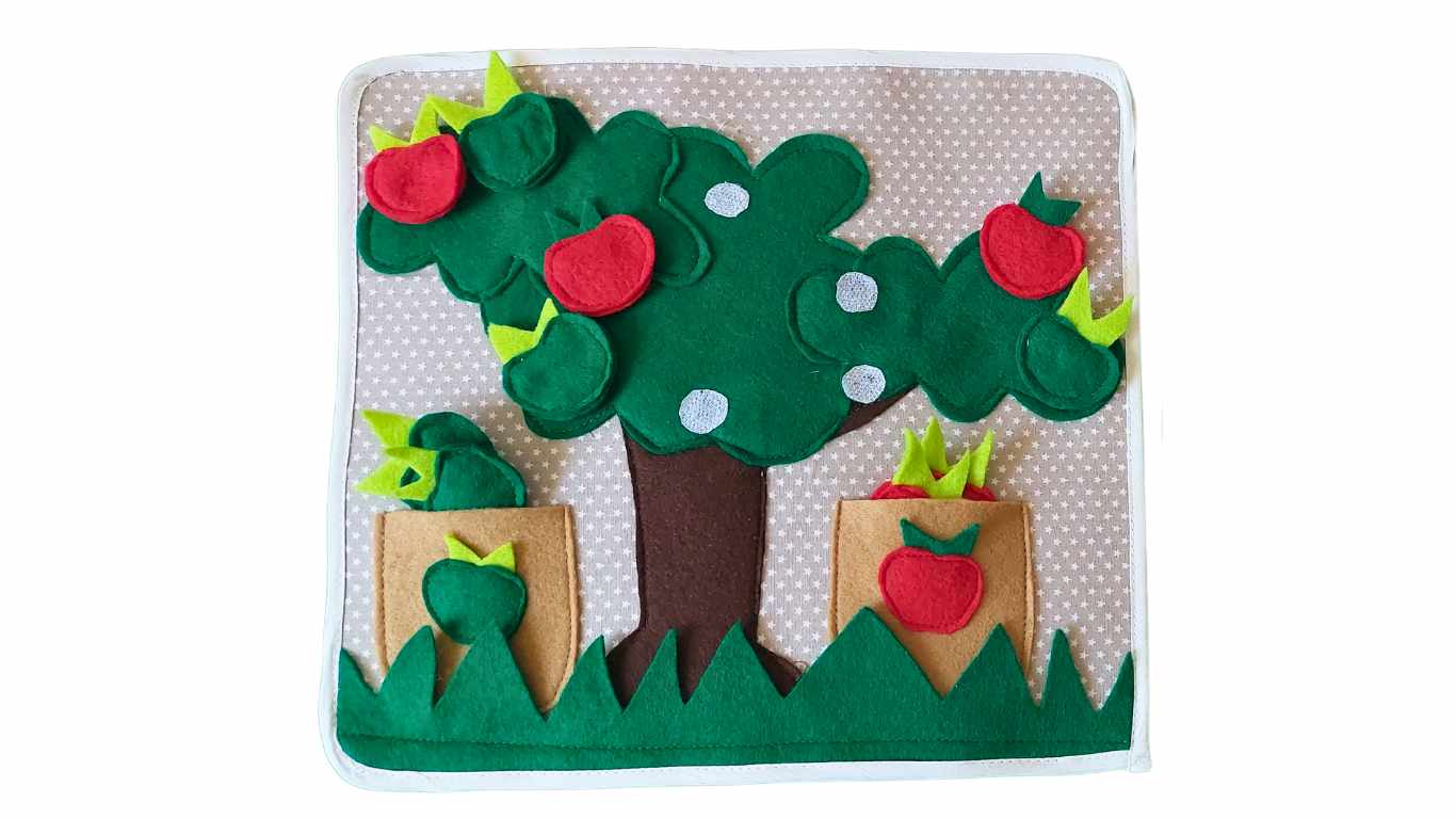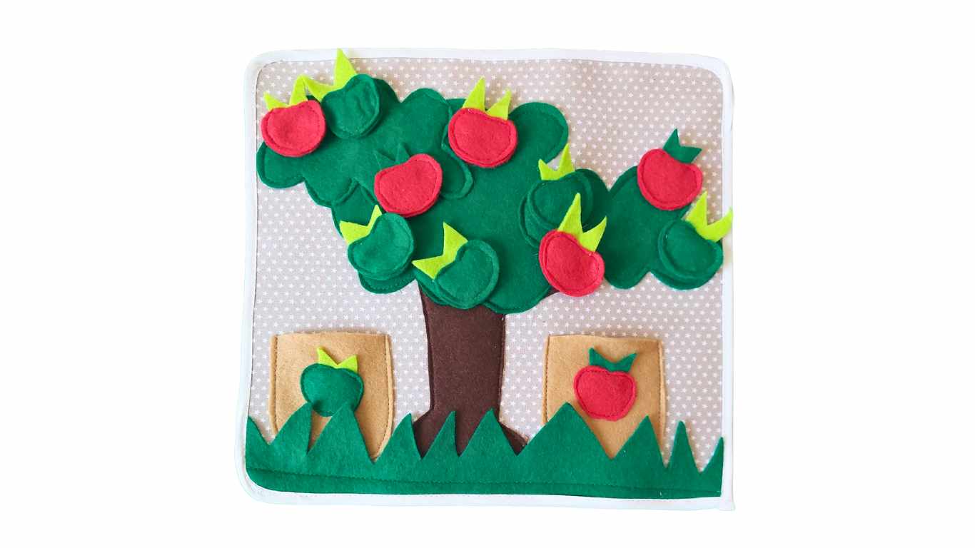 Μία από τις αγαπημένες σας δραστηριότητες , το δέντρο με τα κόκκινα και τα πράσινα μήλα .Η νηπιαγωγός μοιράζει στα παιδιά κόκκινα και πράσινα μήλα και τους ζητά να τα τοποθετήσουν στο σωστό καλάθι. Στόχος είναι τα παιδιά να βρούνε το σωστό καλάθι ,να καταφέρουν να βάλουν τα μήλα στα καλάθια , να αναπτύξουν την λεπτή κινητικότητα ,να έρθουν σε επαφή με μαλακά υφάσματα ,να κατανοήσουν τον χώρο και να συνεργαστούν μεταξύ τους .Η καρτέλα περιλαμβάνει δέκα μήλα συνολικά και θήκη υφασμάτινη για να αποθηκευτούν με το σωστό τρόπο καθώς και κάρτα με συμβουλές για την νηπιαγωγό ή το κηδεμόνα.