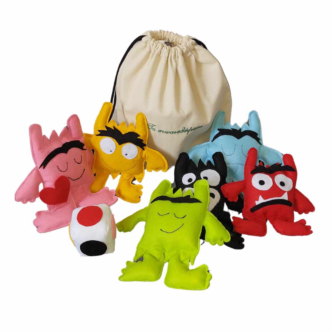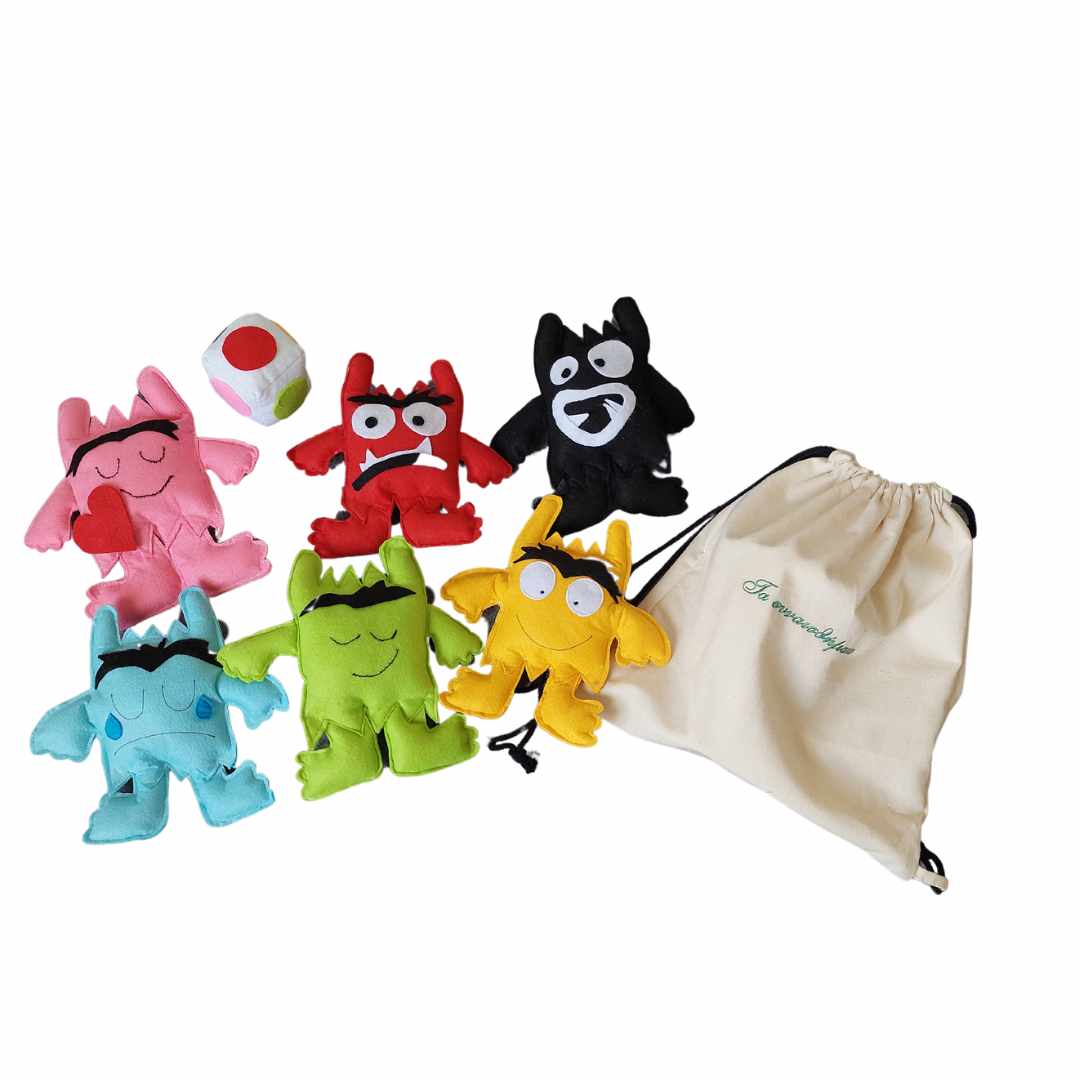 Το παιχνίδι περιλαμβάνει 6 τερατάκια σε διαφορετικά χρώματα , ένα ζάρι με τα χρώματα των συναισθημάτων ,ένα υπέροχο τσαντάκι backpack κεντημένο και κάρτες με συμβουλές για την νηπιαγωγό ή κηδεμόνα .Ο πιο ξεχωριστός και ιδανικός τρόπος να μάθουν τα παιδιά είναι το παιχνίδι .Με το εκπαιδευτικό παιχνίδι Τα συναισθήματα η νηπιαγωγός εύκολα κερδίζει την προσοχή των παιδιών και μετά από την παρουσίαση των συναισθημάτων παίζουν το παιχνίδι που σας προτείνουμε .Η νηπιαγωγός ρίχνει το ζάρι και βάση των χρωμάτων τα παιδιά βρίσκουν το τερατάκι. Με στόχο την εκμάθηση των συναισθημάτων τα παιδιά έρχονται σε επαφή με διάφορα υφάσματα ,διασκεδάζουν ,μαθαίνουν να εκφράζονται και να κατανοούν τα ίδια τους τα συναισθήματα . Καλή διασκέδαση